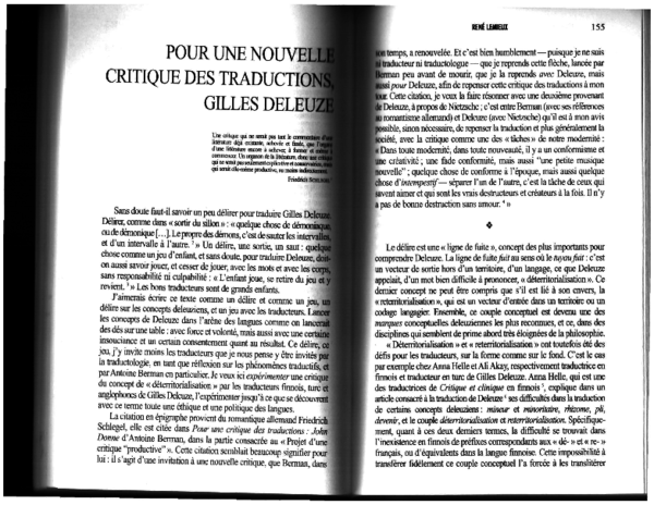 Pour Une Nouvelle Critique Des Traductions Gilles Deleuze Rene Lemieux Academia Edu